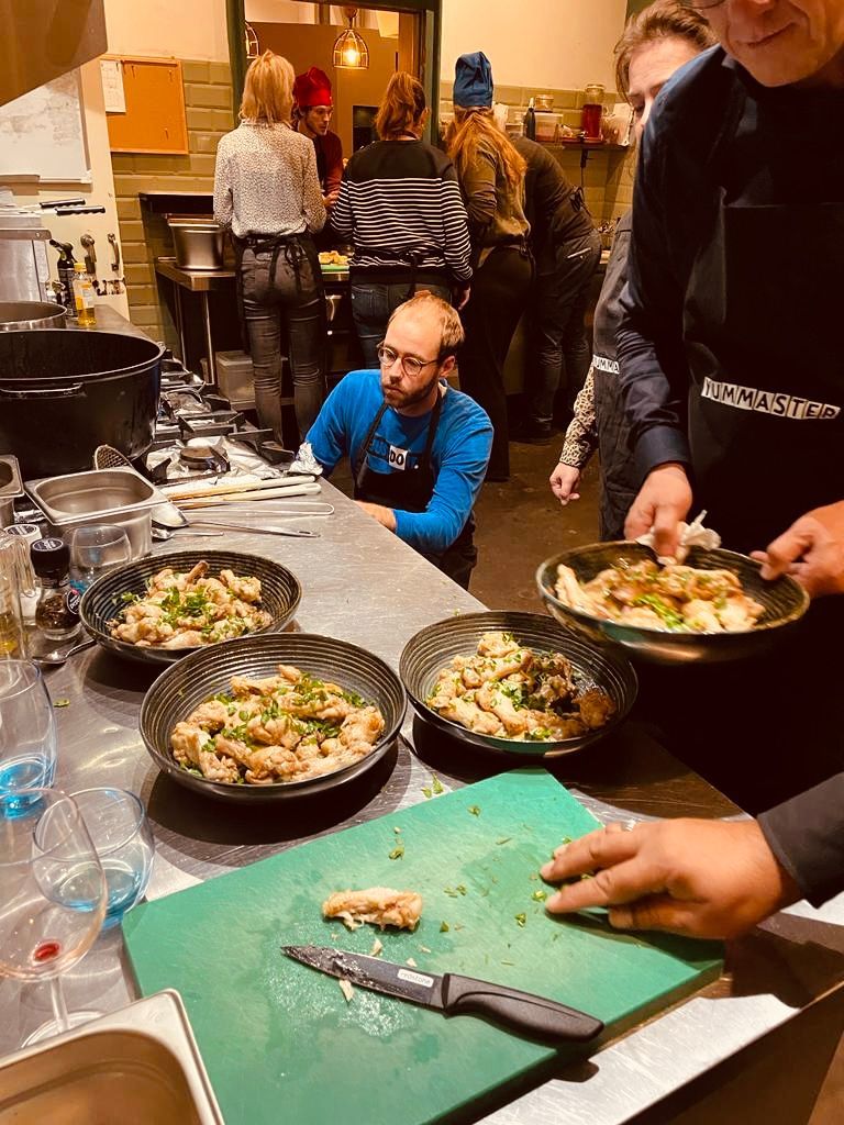 Gedurende de workshop wordt je als deelnemer gevraagd de gerechten te demonstreren aan de totale groep. Het eten van de gerechten zien wij als review waar proefondervindelijk de kwaliteit van het product wordt bepaald.
